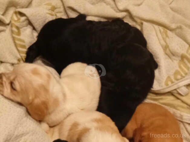 3ready to leave tomorrow (20th)⭐️ 5 beautiful Cocker Spaniel Puppies looking for new homes 1 boy 4 girls Will be flead, wormed,microchipped,1st vaccination and vet checked before leaving. Puppies where born on the 24th September and are due to leave on the 19th November Puppies have been are well socialised being raised in a family home and be handled daily by my children so