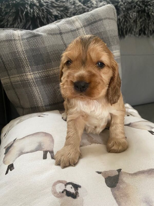 Pups are on a worming programme , they will be microchipped have their first vaccine and puppy health check prior to leaving . They will leave with a puppy pack containing a scented blanket for comfort, food , toy and newspaper / puppy pads .